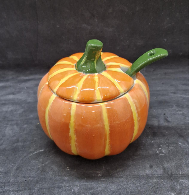 Pumpkin sugar pot with spoon